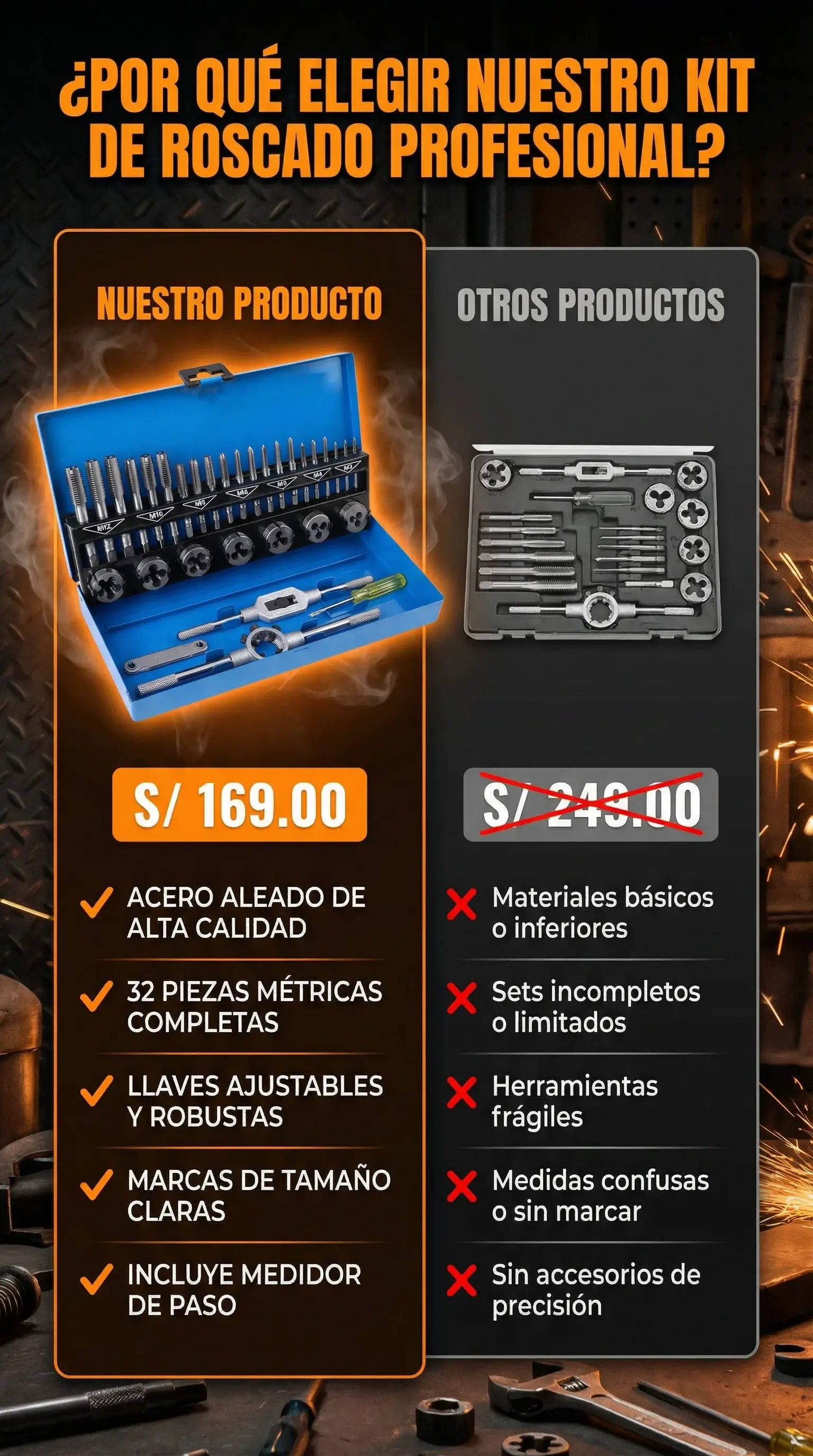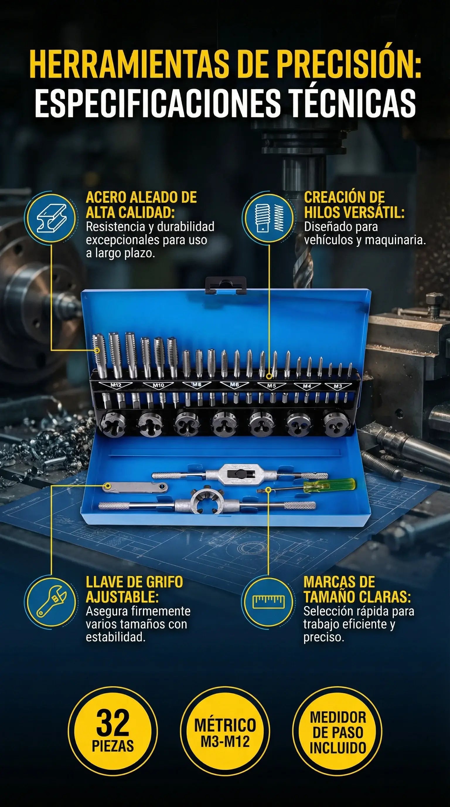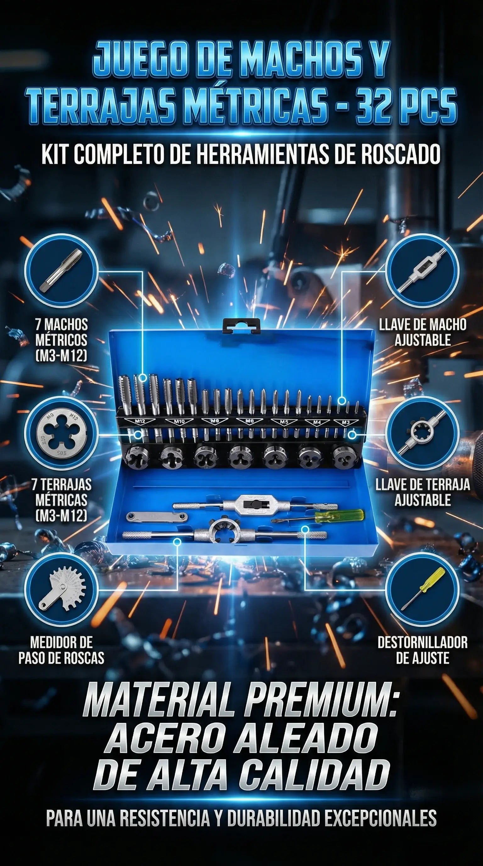 JUEGO DE MACHOS Y TERRAJAS METRICAS - 32 PCS